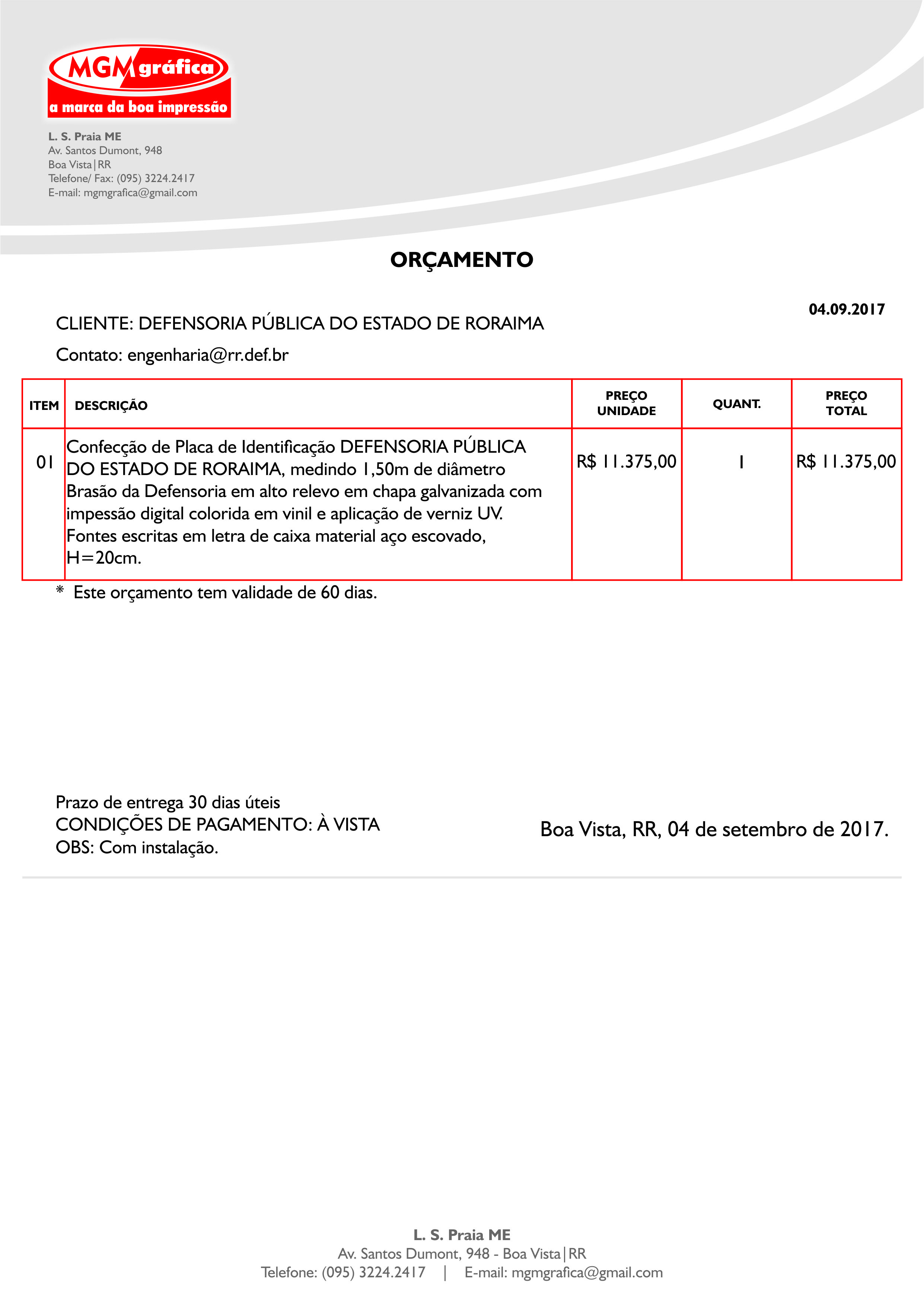 Cotação Placa Defensoria Pública Gráfica Queiroz